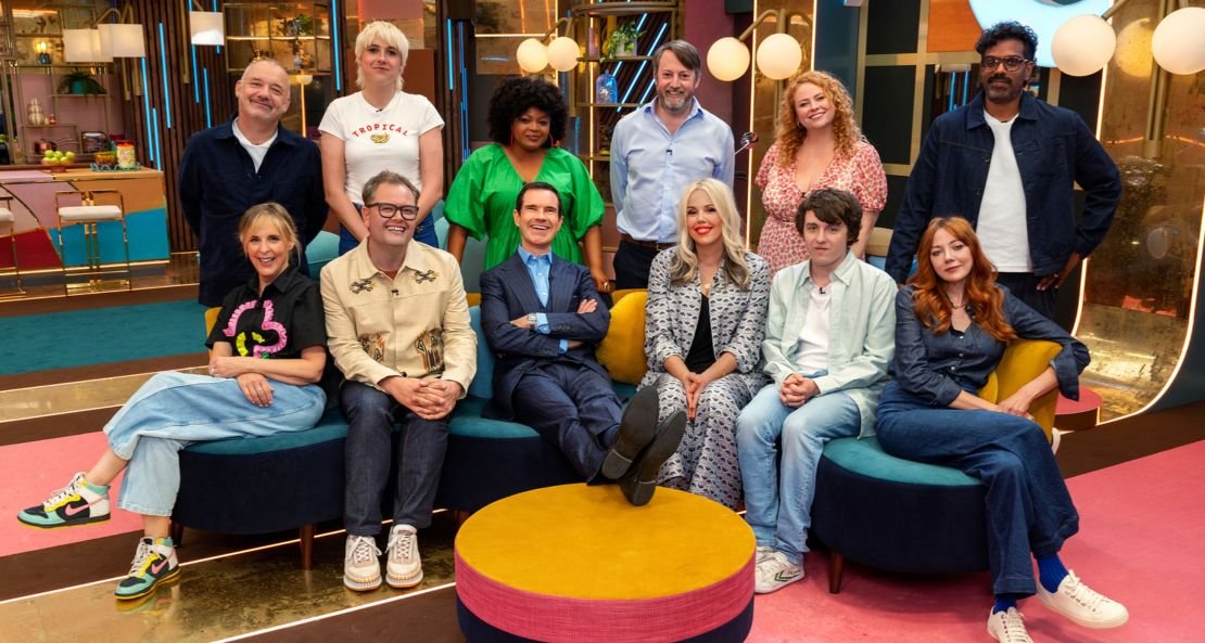 - What is it? Ten comics try to make each other laugh without laughing. Two strikes and you’re out. Host Jimmy Carr; deputy Roisin Conaty.
