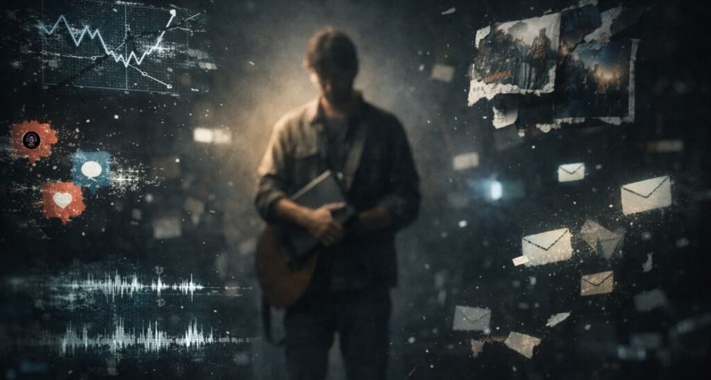 The music industry sells contradictory dreams. Be authentic, but game the algorithm. Build organic reach, but run paid ads. Focus on art, but think like a marketer. Create mystery campaigns, but maintain constant visibility. It’s exhausting, and deliberately so.